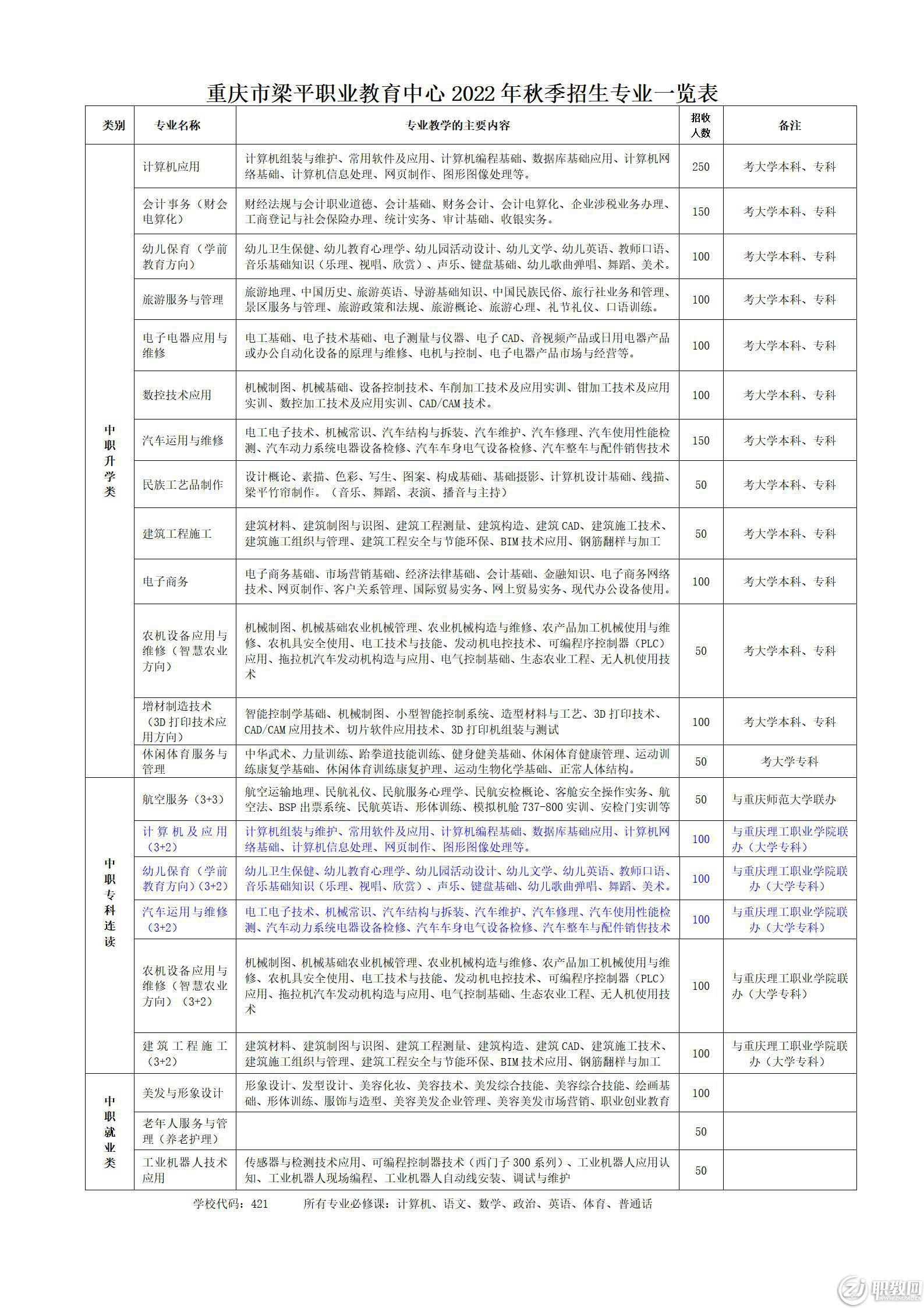重庆市梁平职业教育中心2022年秋季招生专业一览表